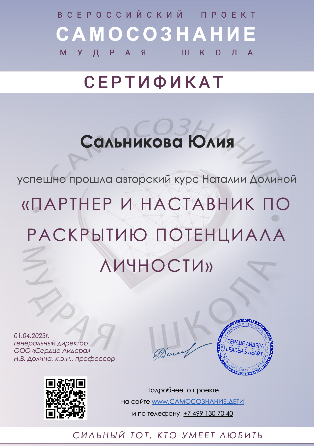 7. Родитель - участник проекта САМОСОЗНАНИЕ.